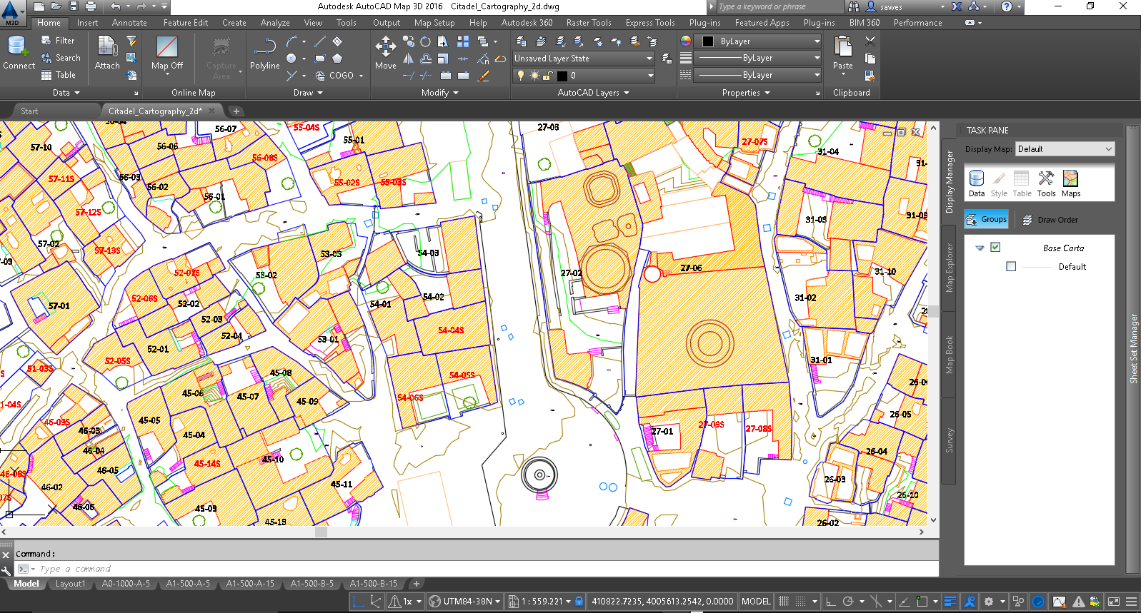 The system allows to go from the general to the particular, activating for example layers and appropriate documents in a specific scale range; in the case of the Erbil citadel for the part regarding the buildings, at the moment are implemented the layers Block and Plot, but you might add others to go down to single particular: Citadel>Block->Plot->Building>Floor>Room>Furniture......