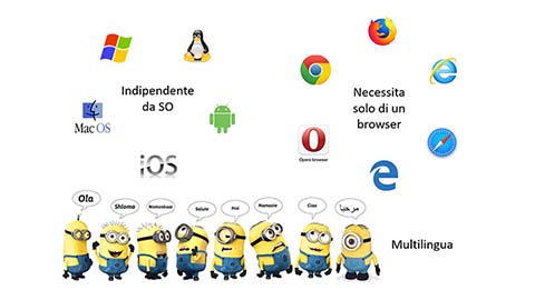 il sistema non richiede l’installazione di alcun software, funziona tramite un qualsiasi browser, indipendentemente dall’hardware e dal sistema operativo; qualsiasi aggiornamento del sistema, o aggiunta di nuove funzionalità, è immediatamente disponibile agli utilizzatori. |