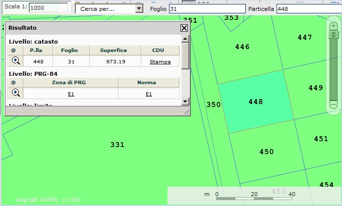 | Descrizione del progetto: Per la realizzazione di tale progetto, si sono dovuti rendere innanzitutto omogenei i dati forniti dall'Ente, ed in particolare catasto (Cassini-Soldner) e aerofotogrammetria (Gaus-Boaga). Si é provveduto a creare le relative topologie per i vari "strati", realizzato il codice per la creazione del Certificato di Destinazione Urbanistica. per le visualizzazioni ed inquadramenti alle varie scal sono stati utlizzati varie fonti dati raster come; Ortofoto, carta dell'istituto Geografico Militare (1:25.000) la carta tecnica regionale (1:10.000); i dati vettoriali: Edifici, particelle catastali, Piano Regolatore adottato ed altri piani di utilità, inoltre sono stati riportati tutti i dati relativi ai vari vincoli. E' stato implementata una ricerca che ci permette di individuare la particella; I layer sono attivabili o meno tramite una casella di spunta. |