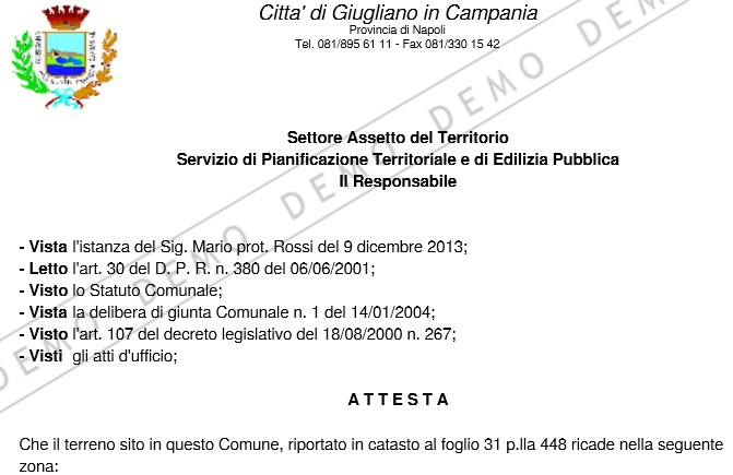 | Nome progetto: Certificato di Destinazione Urbanistica | Cliente: Comune di Giugliano in Campania |