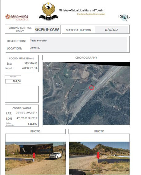 Descrizione del progetto: Nell'ambito del progetto dei master plan 2038 per le città di Ba'adre, Zawita, Bamarne e Shekhan nel governatorato di Dahuk - IRAQ, sono stati posizionati e rilevati i benchmarck per l'orientamento di quattro coppie di immagini satellitari. I benchmarck sono stati inseriti nella rete di quelli fissi del governatorato. Il lavoro è stato propedeutico per l'orientamento delle quattro stereo coppie di immagini satellitari. |